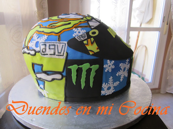 TARTA CASCO VALENTINO ROSSI 2016Hola a tod@s, este es mi último trabajo. Me llamó esta semana una chica que quería hacerle un regalo a su padre, por su cumpleaños, de una tarta que significara algo que le apasiona; las motos y concretamente Valentino Rossi, me dijo que Valentino había sacado nuevo casco para el 2016 y que le encantaría hacerle ése casco en formato "tarta" a su padre. Me preguntó ...