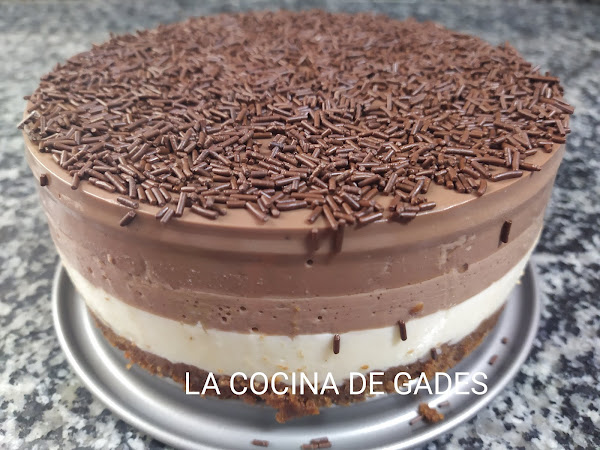 1paquete de galletas Maria,1tableta de chocolate negro,1de chocolate con leche,1 de chocolate blanco,1 litro de leche,600ml de nata ,3 sobres de cuajada,azúcar y mantequilla .