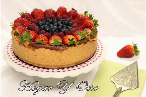 Haremos una base con galletas y mantequilla, que pondremos en el molde y lo rellenamos con una crema de queso, nata, huevos y más ingredientes ´que veréis en la receta, la cocemos en el horno hasta que esté hecha y una vez fría la adornamos por encima con una mermelada de fresas o frambuesas.
