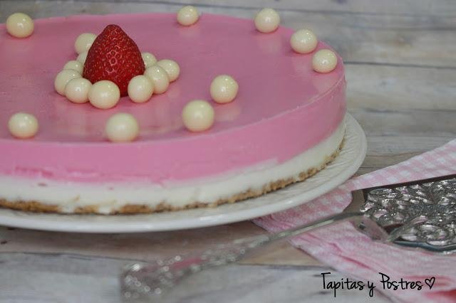 Desde Tapitas y Postres te traigo una Tarta de chocolate blanco y fresa que, además de ser muy bonita a la vista, es muy agradable al paladar. Sobre una base de galleta y mantequilla, se preparan dos capas: una de chocolate blanco y otra de gelatina de fresa con queso crema. La tarta se deja enfriar en la nevera y se decora al gusto.