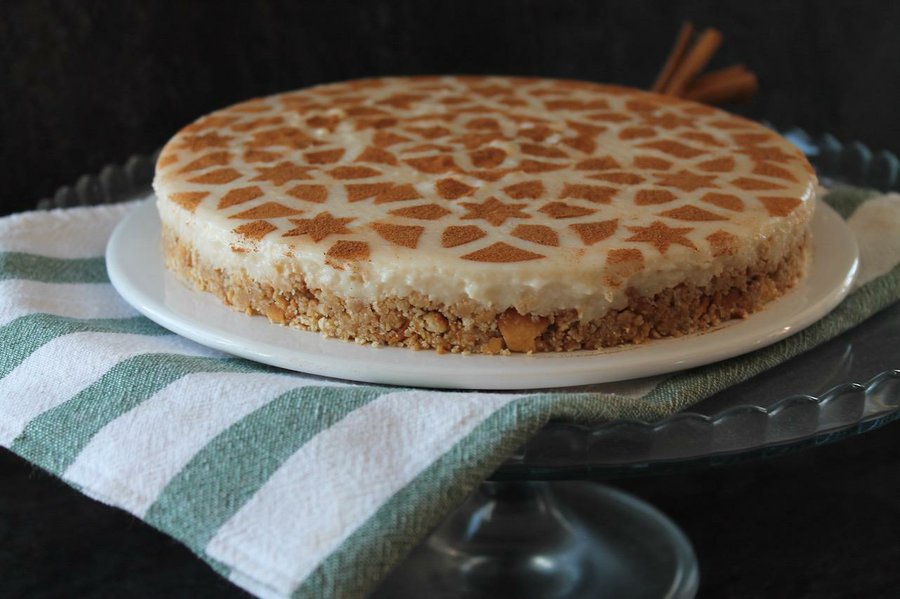 Del blog Orielo's Kitchen te sugiero esta Tarta de arroz con leche sin lactosa muy fácil de preparar. Sobre una base de galleta y mantequilla, se vierte una mezcla de arroz con leche y cuajada. Se lleva a la nevera a enfriar y sólo queda decorar con canela molida utilizando alguna plantilla. El resultado salta a la vista, y está riquísima.