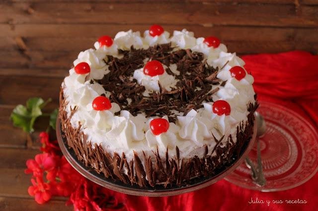 En último lugar, de parte de Julia y sus recetas, una de esas tartas que siempre solemos ver en las tiendas, la Tarta selva negra (pincha en el nombre para ver la receta completa) que ya veréis como no es una quimera hacerla en casa: