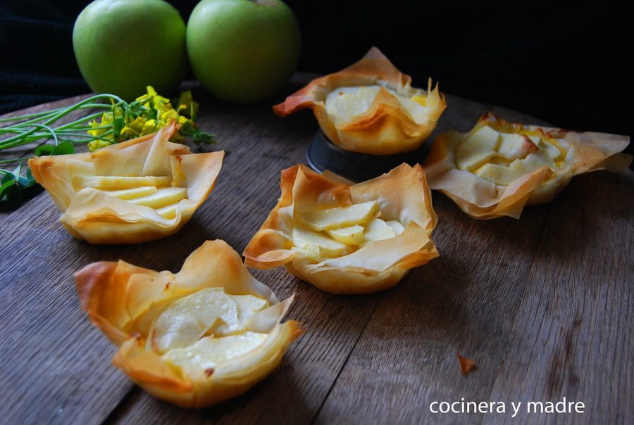 Yo en esta ocasión os dejo una receta muy sencillita y que resulta fantástica. Estas tartitas finas de manzana son una delicia y aunque yo las he hecho en versión individual también se pueden hacer grandes, además son perfectas para comer tibias, aunque se pueden comer frías y están muy buenas igualmente. La masa resulta de lo más crujiente pero al mismo tiempo son muy suaves y el toque de la manzana blandita es genial. Tenéis que probarlas, de verdad, no os van a defraudar.