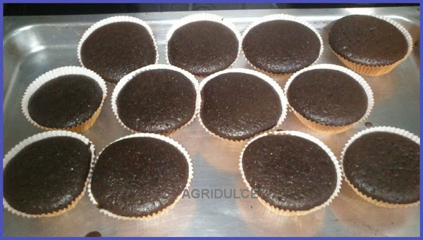 * Poner una nuez en el fondo de cada cápsula y repartir la masa de choclate sobre ellas. Yo puse los papeles dentro de otros moldes que tengo de silicona por si se abrían demasiado. Hornear en horno precalentado calor inferior mas turbo, a 150 º C durante 25 minutos.
