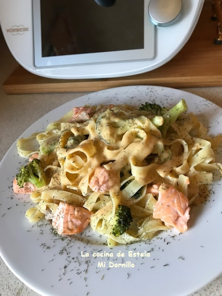 - Cuando ya el pescado se mira que ha cambiado de color (blanco) es que ya está cocinado, agregar la pasta y la brócoli, revolver.
