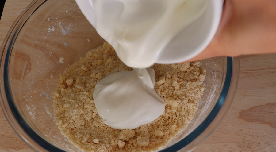 1. Agregue harina y sal a la mantequilla. Haz migas de mantequilla con las manos. Mezcle la crema agria con bicarbonato sodio y agréguela a las migas. Amasar la masa, envolver en film transparente y refrigerar.