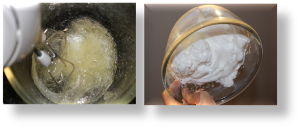 Añade a un bol las claras y monta con una pizca de sal. Deben quedar muy firmes, de forma que cuando gires el bol la clara quede pegada a éste y no caiga. ¡Asegúrate de que está firme ante de girarlo, hazlo a cámara lenta!