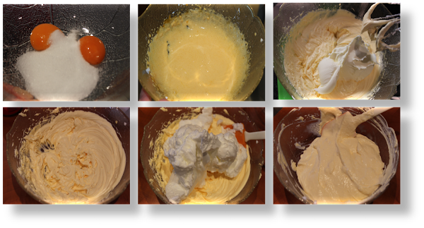 Aparte, en otro bol, bate las yemas con el azúcar. Cuando la crema espese y empiece a blanquear, añade en dos veces el queso mascarpone. Bate hasta integrar muy bien los ingredientes.