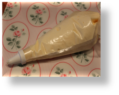 Seguidamente coloca la crema de tiramisú en una manga pastelera y reserva en la nevera.