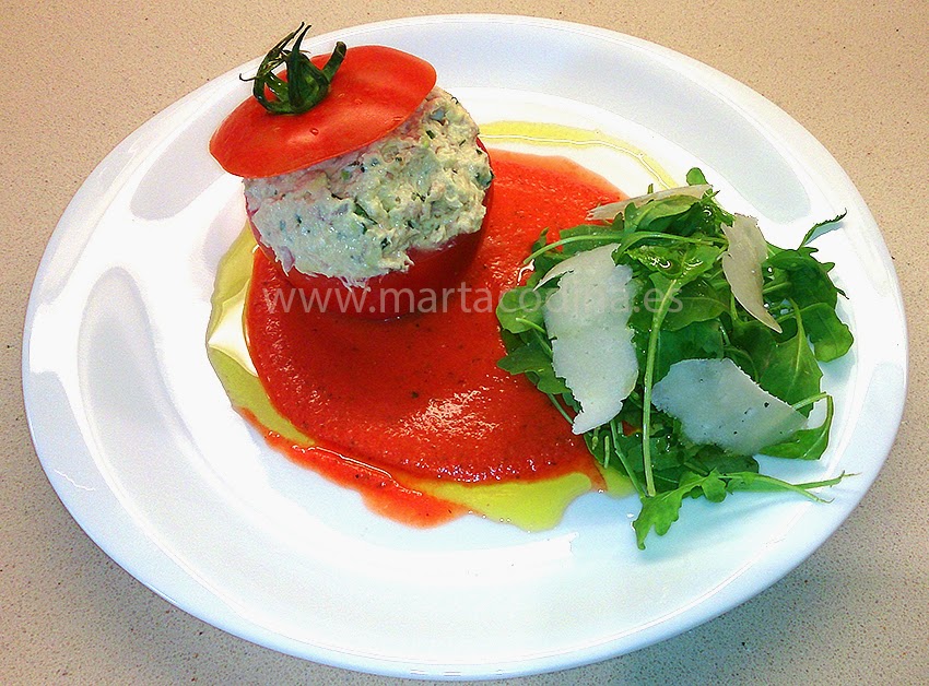 CONSEJO: Si te sobra preparación de rellenar los tomates, haz como hemos hecho nosotras, con la ayuda de un molde redondo de emplatar (sirve perfectamente uno para repostería) hemos decorado nuestros platos de forma más atractva y llamativa.