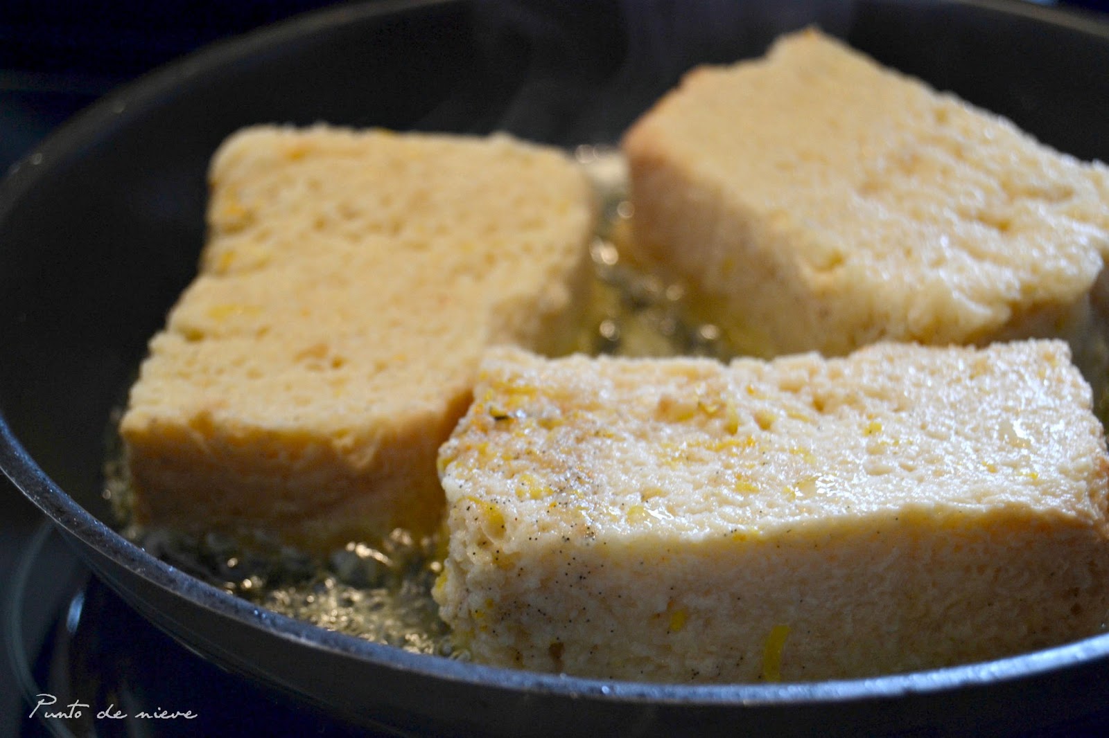 4 rebanadas bastante gruesas de pan de molde casero; pan para torrijas; o brioche (lo importante es que sea un pan blando para que pueda absorver mejor los aromas y sabores),1 huevo batido,500 ml de leche,2 cucharadas de azúcar,1 cucharada de canela,1 cucharadita de vainilla en polvo,ralladura de un limón,ralladura de una naranja,150 ml de zumo de naranja,mantequilla,aceite de oliva,sirope de arce (opcional),azúcar glas (opcional)En primer lugar mezclamos la leche con el huevo batido, el azúcar, la canela, la vainilla, la ralladura de limón, la ralladura de naranja y el zumo de naranja. A continuación, incorporamos las rebanadas de pan en la mezcla y las dejamos que la absorban, al menos durante 15 minutos.Una vez pasado el tiempo, les quitamos el exceso de líquido y reservamos. En una sartén ponemos un poco de mantequilla y de aceite y lo calentamos (no demasiada cantidad, recordar que no se trata de freírlas sino de hacerlas a la plancha) Cuando esté caliente incorporamos las rebanadas de pan y las hacemos por ambos lados hasta que estén ligeramente doradas.