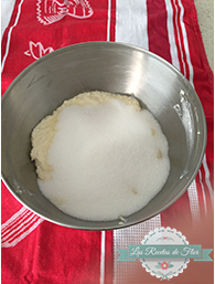 Vamos a mezclar la manteca que tiene que estar a punto pomada (temperatura ambiente) con el azúcar. Una vez que esta integrado, le vamos a agregar el huevo y medio. Revolvemos, y le agregamos el harina tamizándola