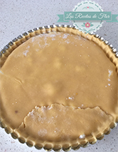 Ahora sacamos la masa de la heladera, y la estiramos la mitad con un palote, y la colocamos en la base previamente enmantecada y enharinada.