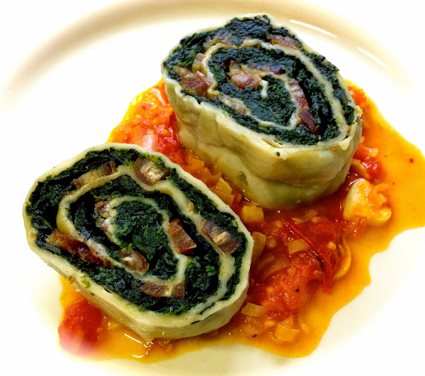 Rotolo de verduras y hongos.En el ultimo viaje conoci a unas pasajeras maravillosas que se prestaron a escuchar mis recetas y prometí dedicarles una.Como compre hongos en La paz, en una excursión, hoy les propongo esta receta....Ingredientes:Masa de tarta light 1 paquete.Espinaca 4 paquetesCebolla 2Echalottes 2 (opcional)Hongos de pino 1/2 tazaSalsa de tomate cubeteada 2 latas o una casera.Ajo c/n ...