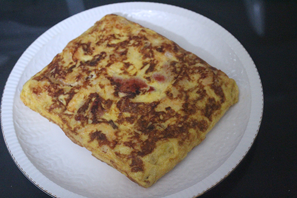 Batimos los huevos, añadimos los pimientos del piquillo y las patatas y mezclamos todo bien. Por último, meter la mezcla en un molde apto para microondas y calentar hasta que cuaje.