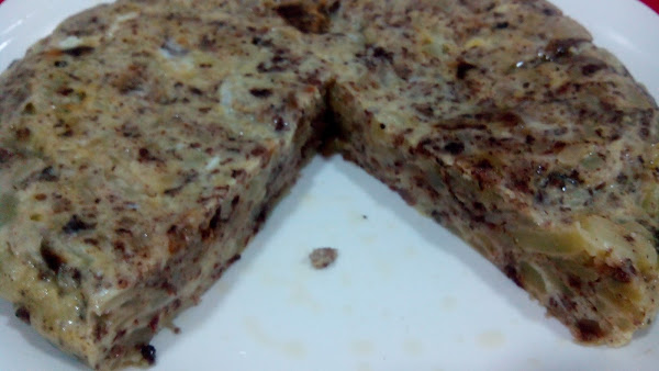 En el paso a paso veréis que hay más huevos y más de todo y es que dupliqué cantidades para hacer el doble de tortilla