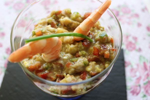 Ingredientes12 gambones, ½ piña, 1 aguacate, 1/2 pimiento verde, ½ pimiento rojo, 12 tomates cherry, unos tallos de cebollino.Para la vinagreta20 frambuesas, 1 cucharada de vinagre balsámico, pimienta de Jamaica, sal, 2 cucharadas de aceite de oliva extra virgen.Yo use gambones ya cocidos, (si fueran frescos se cuecen en agua salada hasta que cambien de color, luego se retiran se enfrían en un bo ...