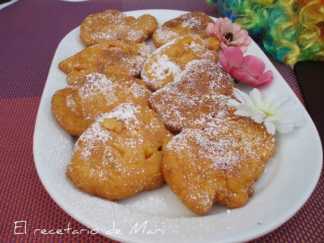 Cubrimos una sartén con el aceite y dejamos calentar bien. Vamos echando cucharadas grandes de la masa en la sartén y doramos las tortitas por ambas caras. Las dejamos enfriar sobre un papel absorbente. Una vez frías las espolvoreamos con azúcar glas.