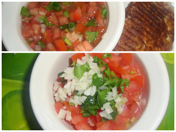 La Salsa Pico de Gallo, es un complemento para muchos platillos, puede ser utilizada en los molletes, las quesadillas, sincronizadas, tostadas, en fin, de hecho te puede servir de base para preparar un rico guacamole, pues son los mismos ingredientes, sólo se le agrega el aguacate, un chorrito de limón o vinagre para que el aguacate no se haga negro y listo!!Ingredientes:2 tomates picados en cubit ...