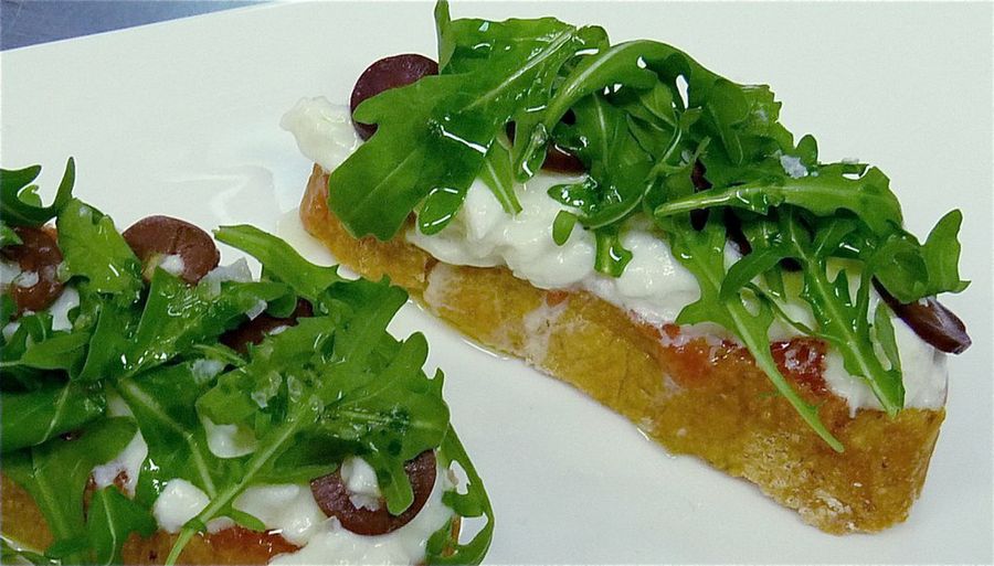 La gran variedades de tipos de pan que hay en el mercado permite que podamos usar también pan de molde o pan ya tostado como base de nuestras tostas. Para el pan de molde se propone hacer una tosta de rúcula, queso y nueces.