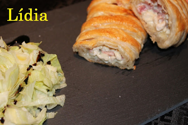 Se lleva al horno por media hora o hasta que el hojaldre infle y tome un color dorado.