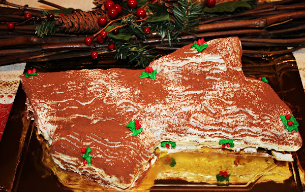 A continuación cubre con la crema de queso mascarpone y nata todo el tronquito. (ver imagen).