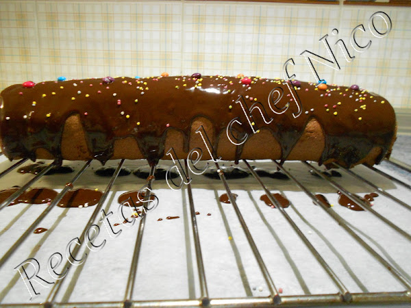 3.Vertemos la cobertura con ayuda de una cuchara por el medio del tronco de navidad y dejamos que resbale el chocolate.