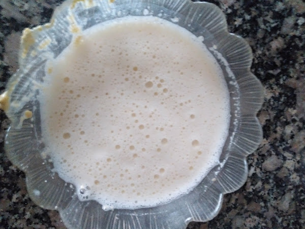 Una vez obtenido esto echamos un chorro de vinagre y batimos bien. Si nos quedan grumos podemos repasar un poco con la batidora.
