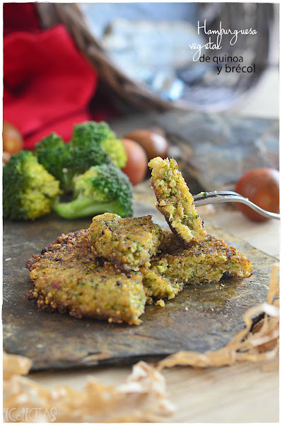 En mi caso el día de la foto las hamburguesas estaban poco compactas y parte de la quinoa se fue soltando al freír, lo cual es muy molesto porque salpica. Eso se soluciona añadiendo el pan rallado que sea necesario y haciendo la forma bien bien compacta.