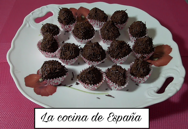 4. Al día siguiente la masa habrá tomado consistencia y nos permitirá hacer bolitas sin dificultad, con la ayuda de dos cucharas de postre. Rebozar estas bolas en un plato con fideos de chocolate. También se pueden rebozar en viruta de chocolate o cacao amargo. Incluso con chocolate derretido y casi frío, con lo que quedara luego, al enfriarse completamente, una corteza crujiente con un corazón de mousse. En este caso dejar solidificar sobre rejilla.