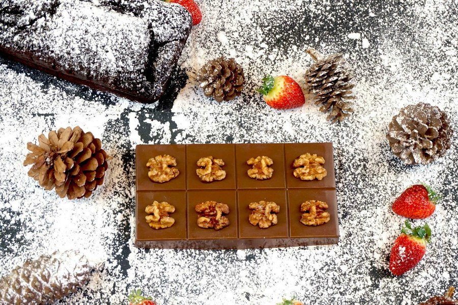 Una vez solidificado desmoldar y decorar con nueces caramelizadas que pegaremos al turrón con un poco de chocolate fundido.