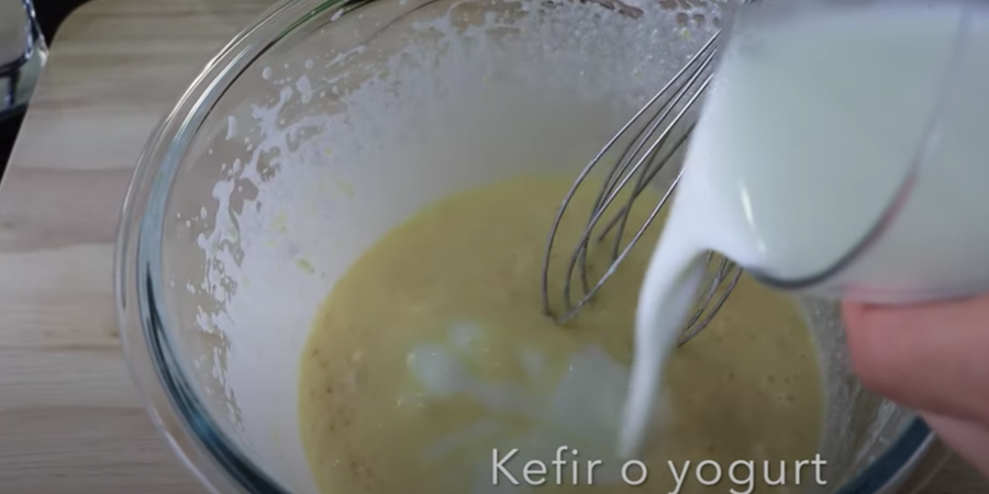 1. Batir el huevo con el azúcar hasta que quede esponjoso. Agrega mantequilla ablandada. Batir. Agrega sal, vainilla y kéfir. Batir de nuevo.