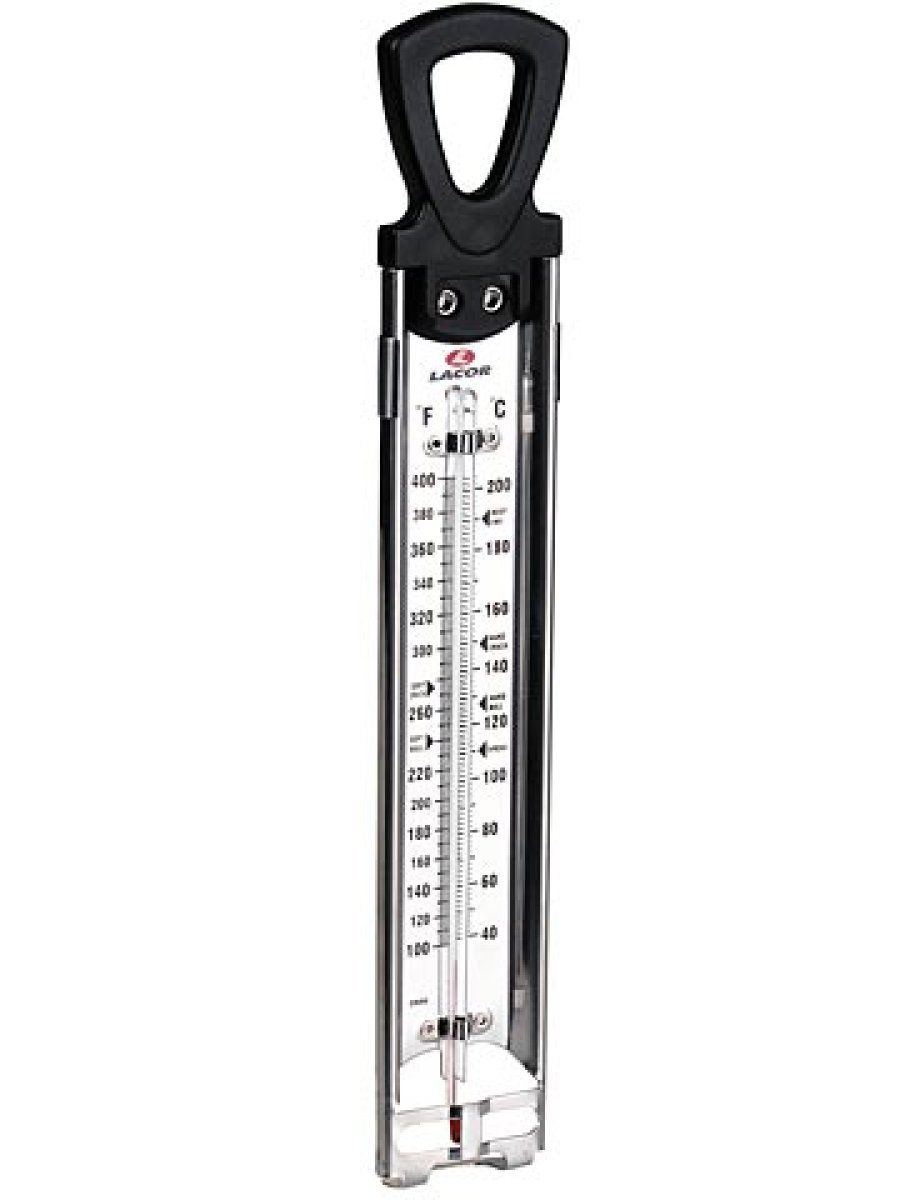 No menos práctico es el termómetro analógico para medir la temperatura del aceite que nos trae Lacor. De esta forma sabrás el momento exacto en el que freír cada alimento. Si prefieres una precisión máxima, la misma compañía te la ofrece un completo termómetro para horno capaz de soportar hasta 300 ºC. Para ahorrar espacio dentro del electrodoméstico, su pantalla es abatible.