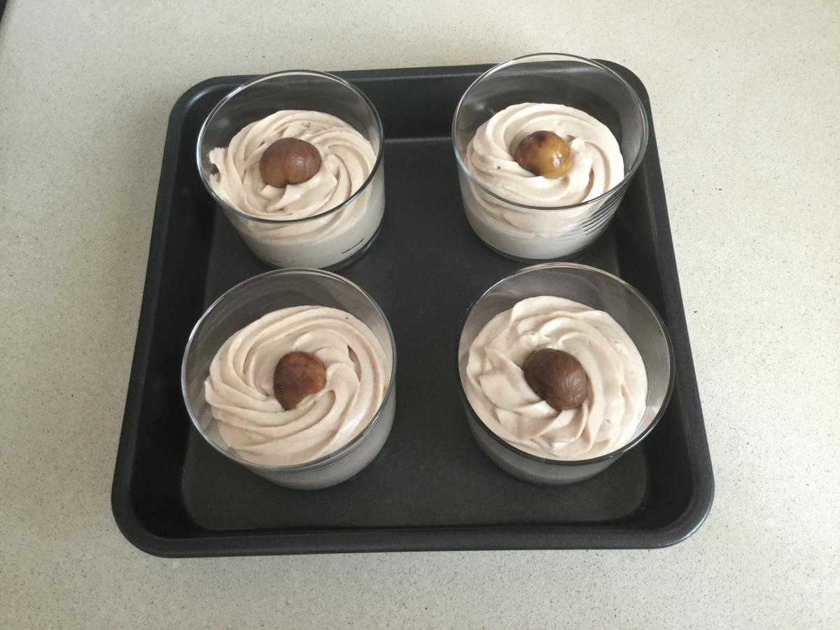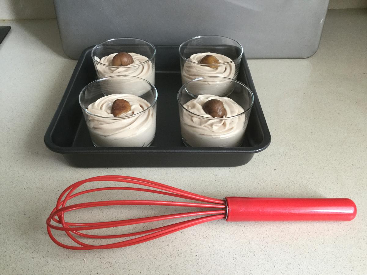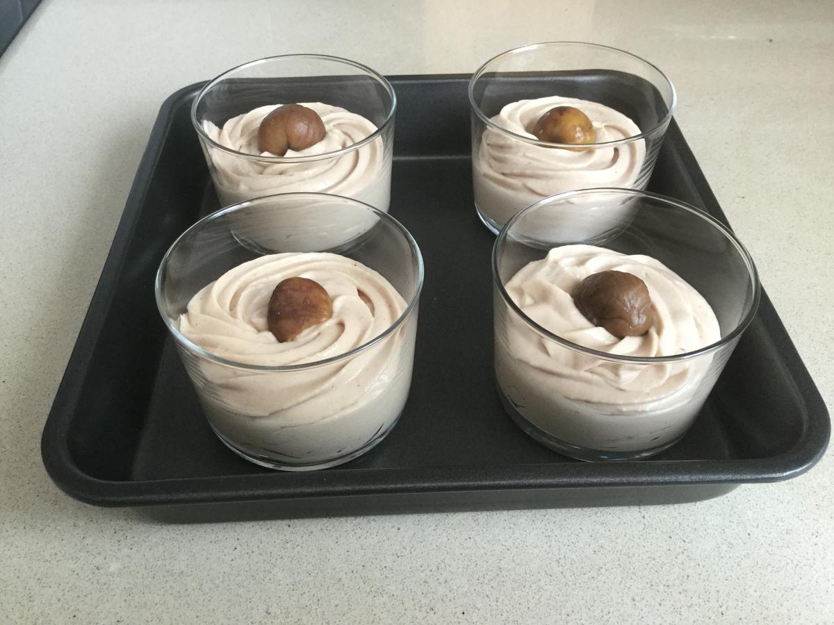 Mi consejo es que vayáis probando porque una crema de castañas muy dulce puede estropear el postre. La que veis en la foto no es de las más dulces por lo que se ajusta a las cantidades que os facilito.