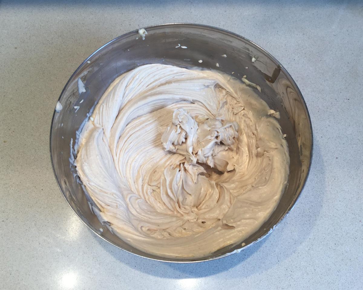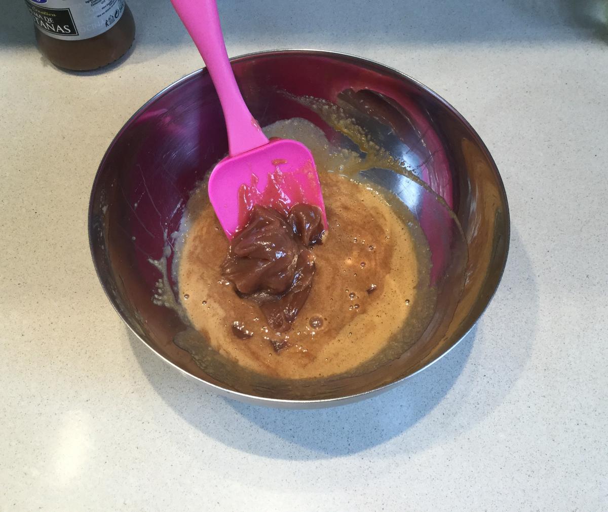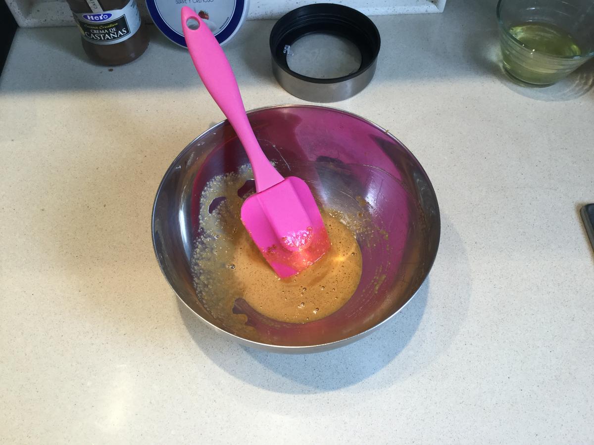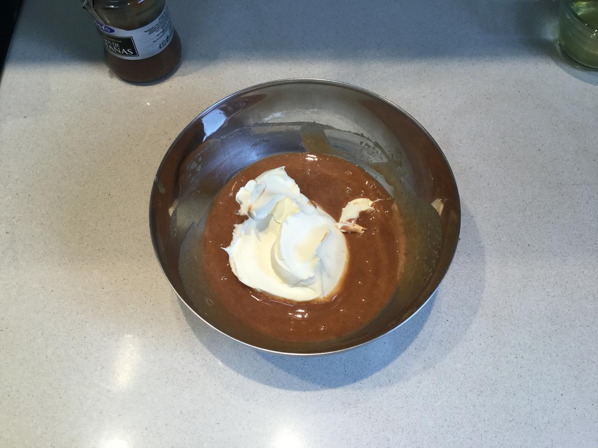 añadimos la crema de castañas y mezclamos con la espátula.
