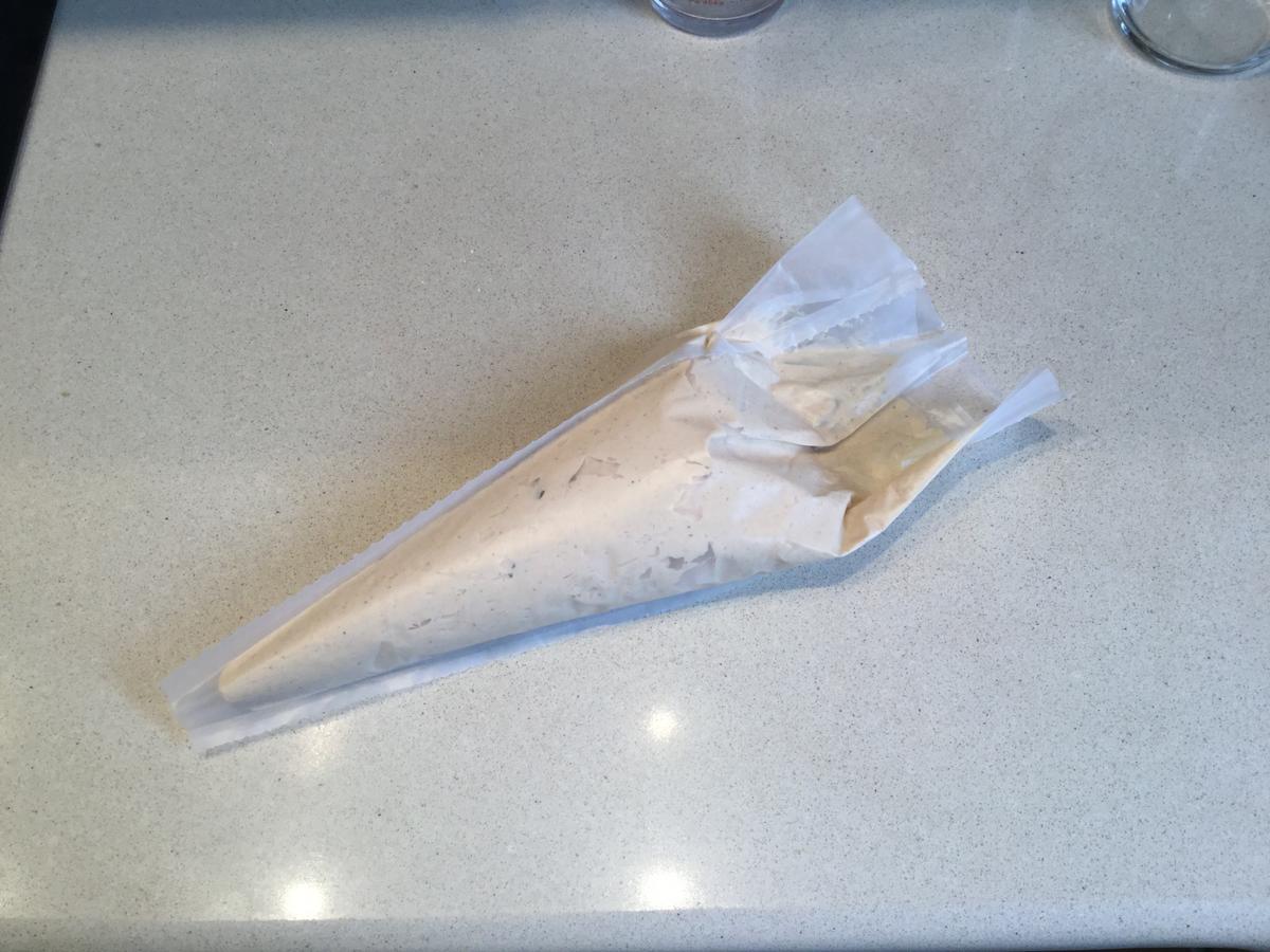 En alguna de las fotos podéis ver que he utilizado la boquilla 1 M de Wilton y la crema mantiene su forma. En otras simplemente hice un corte en la punta de la manga pastelera y también queda bien.