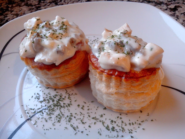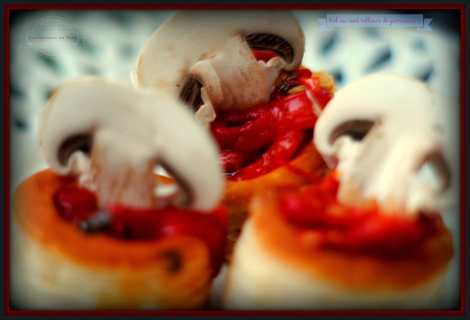 Hola a todos... Ante todo os deseo un nuevo año maravilloso a todos!! Aquí os presento una delicia que preparé para la cena de nochevieja, los tradicionales pimientos asados presentados dentro de un vol au vent mini, adornados por un champiñón laminado, quedaron estupendos y además con una presentación impresionante!!