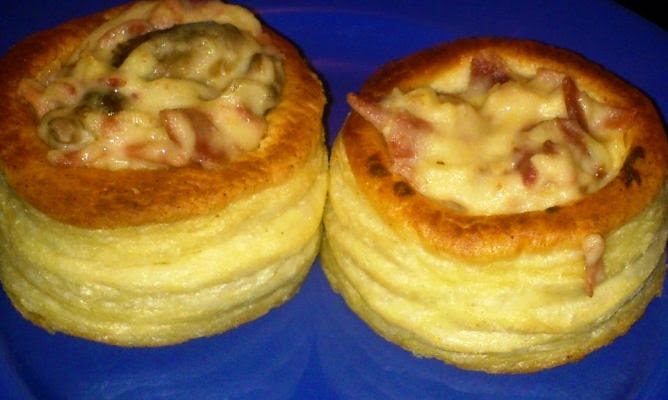 bacalao,vol-au-vent,aceite de oliva,ajo,tomate,vinagrePREPARACION DE LA "ESQUEIXADA" Ponemos bacalao desmigado en remojo, 24 horas, cambiando tres o cuatro veces el agua. Lo escurrimos y lo ponemos en un plato. Rallamos tomate y ajito y lo mezclamos con el bacalao. Le echamos un poco de aceite y vinagre. Rellenamos los vols-au-vent. Lo adornamos con una aceituna negra y vinagre balsámico