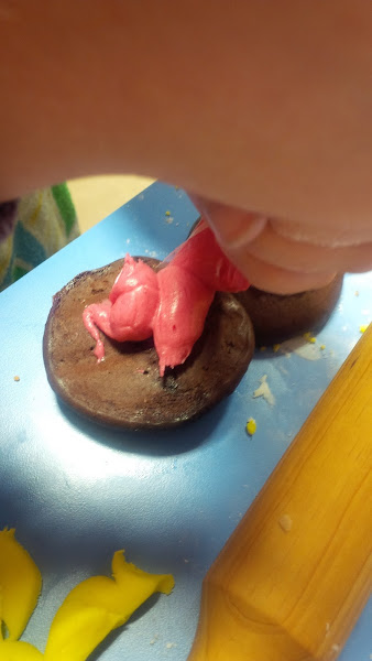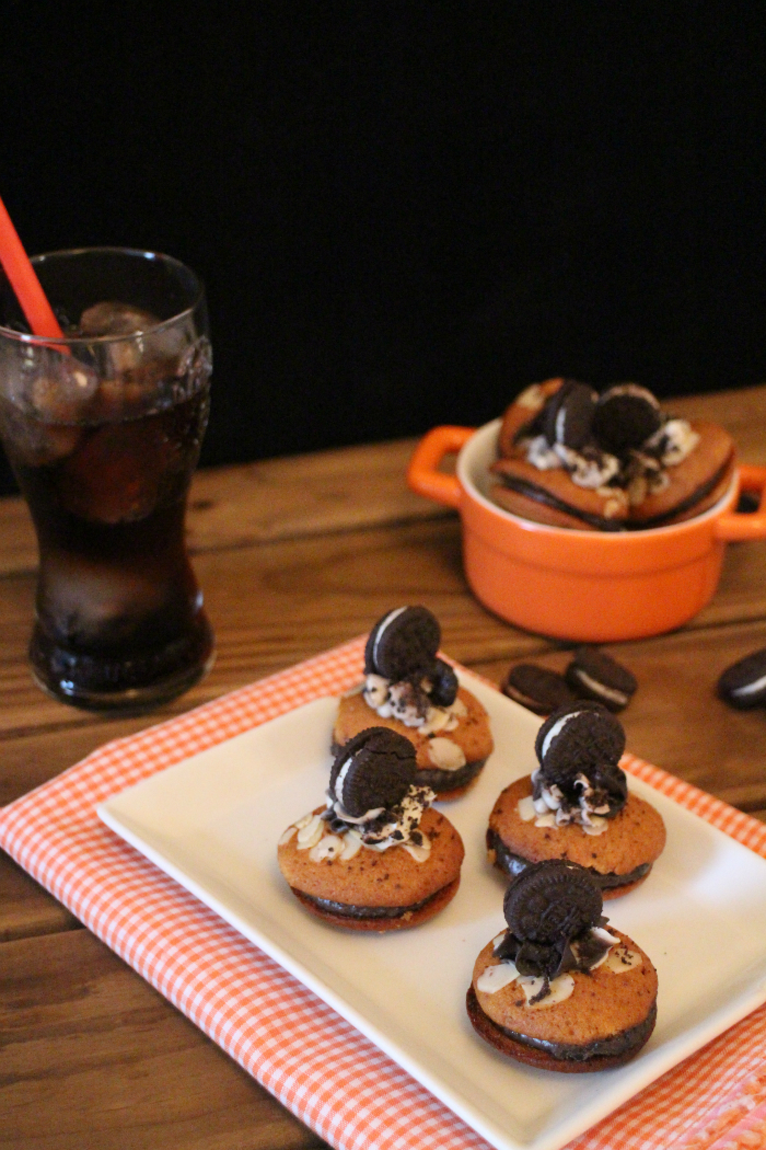 En la placa de horno colocamos una hoja de papel vegetal y con ayuda de una cuchara o un sacabolas de helados ( esto nos ayudara a que los whoopies salgan del mismo tamaño) vamos repartiendo la masa sobre las bandejas no poniéndola muy juntas para que no se mezcle la masa. Y se hornea unos 10 minutos aproximadamente. Los sacamos y los dejamos enfriar . Los rellenamos con el relleno elegido (nata, crema, nocilla....)