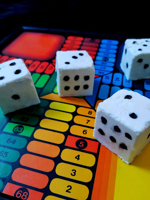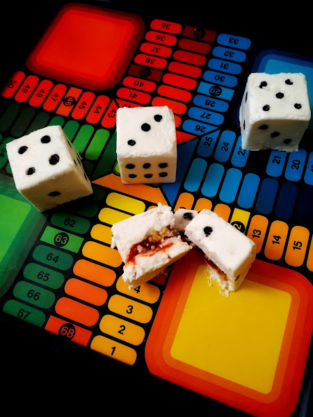 Cuando queramos comerlos, sacamos del congelador, y con un pincel para alimentos y la tinta, pintamos los números del dado. Dejamos descongelar y servimos.