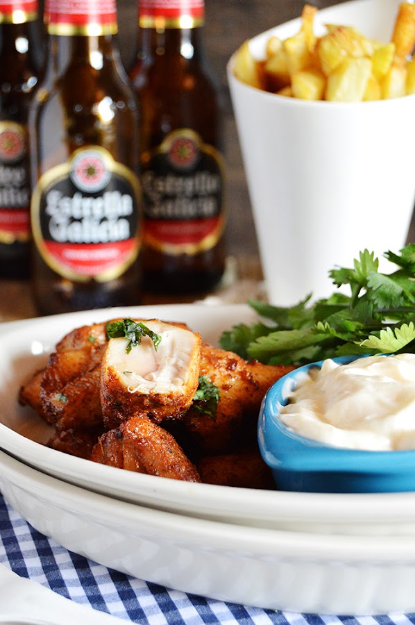 Mezclamos el aceite con el condimento mexicano, un toque de sal y pimienta. Embadurnamos bien nuestros dados de pollo con esta mezcla y reservamos un par de horas en la nevera o mejor toda la noche.
