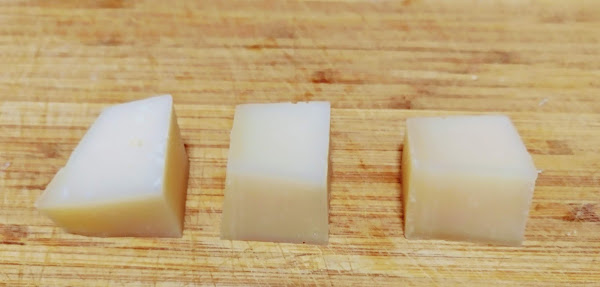 Cortamos el queso en dados de un centímetro por lado aproximadamente.