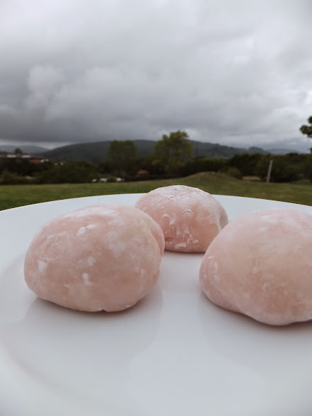 Lo único que he cambiado de la receta de Taka es el relleno porque me decidí a hacer los mochis tras probarlos en el restaurante japonés que han abierto recientemente cerca de donde vivo, donde hacen unos rellenos de queso de escándalo que me enamoraron ya en el primer bocado. Culo veo, culo quiero. No paré hasta conseguir una receta a la altura, y éstos, lo están. De hecho, he descubierto, que son aún mejores, nada más hacerlos, mientras el relleno de queso está aún frio y el mochi ligeramente caliente... Sobran las palabras. Espero que los probéis.