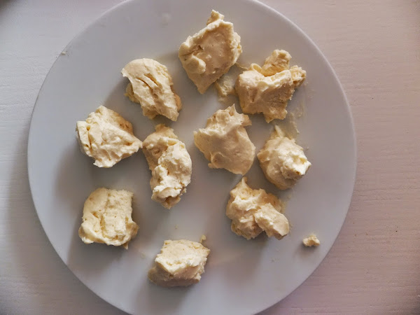 3. Mete la crema en el congelador, separada en ocho partes iguales de aproximadamente una cucharada cada uno.