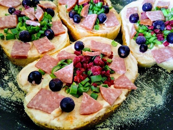 No son realmente pizzas, tampoco son tostas, pero ahi estan. Puedes hacer pizzas tipo tosta y gratinar o bien triturar el pan y hacer una especie de masa con queso y extender ,rellenar y al horno.