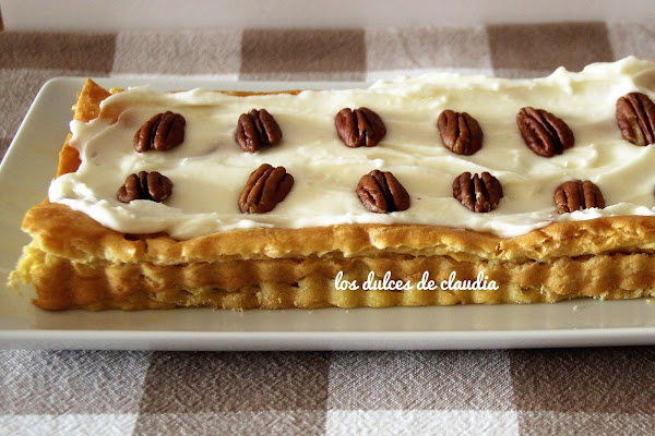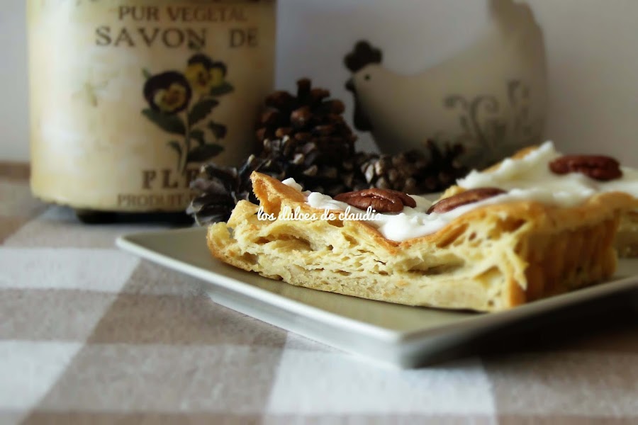 La parte del medio es parecida o igual a la receta de los profiteroles y queda como hojaldrada .
