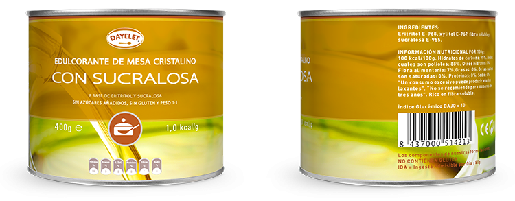 Nuestro Edulcorante DAYELET CON SUCRALOSA se metaboliza en forma similar a la fibra dietética, sin afectar para nada el nivel de glucosa en la sangre, por lo que es perfectamente admitido por todas las personas diabéticas. https://www.dayelet.com/es/