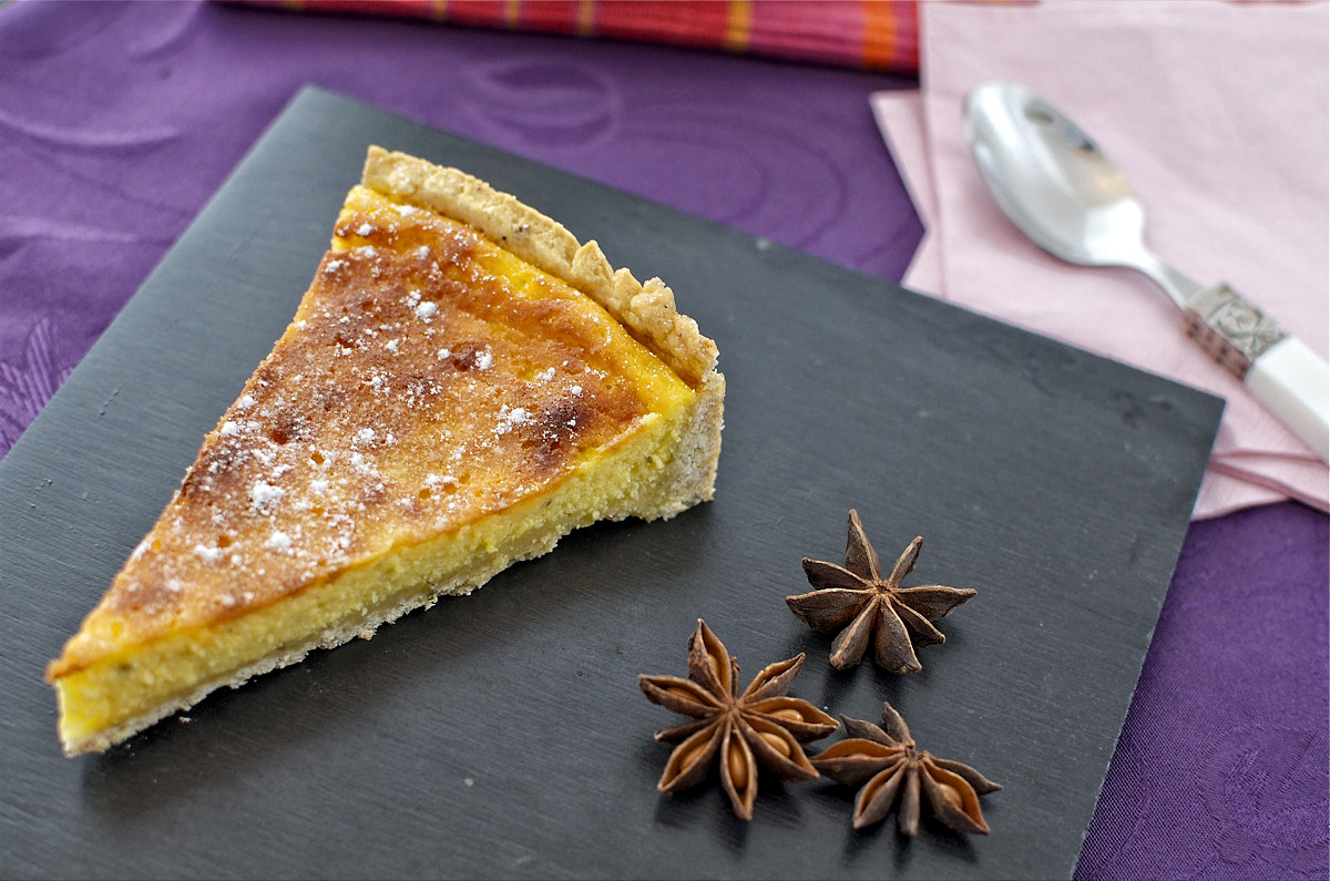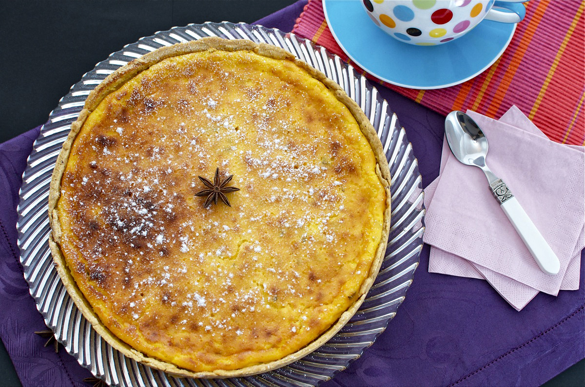 Para preparar la masa, en un bol mezclamos bien la harina con la levadura, el azúcar, el anís en grano ( yo lo molí con el mortero antes) y la copita de anís. Amasamos hasta obtener una masa uniforme y que no se pegue en las manos. A continuación colocamos la masa entre dos papeles de horno y la estiramos lo más fina posible. La colocamos en el molde que previamente hemos engrasado con un poco de mantequilla y la llevamos al congelador mientras preparamos el relleno, así conseguiremos que la masa no se despegue de las paredes cuando la llevemos al horno.