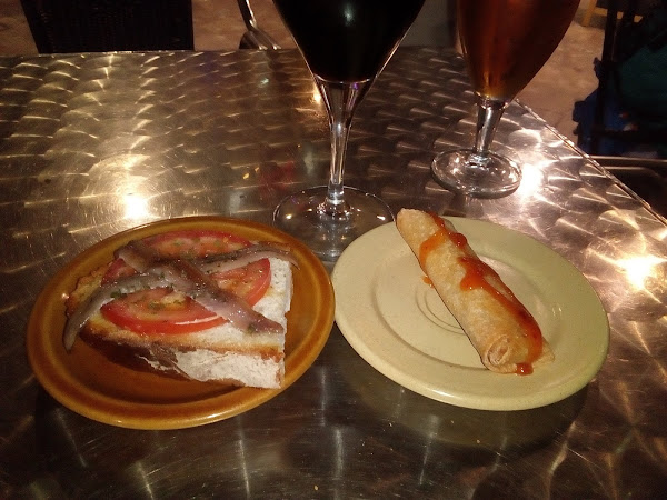 Al ser un viernes por la noche había muchísima gente y como nosotros íbamos con una niña pequeña buscamos un sitio más tranquilo donde tomar una tapa sentados y sin tanto bullicio y encontramos La Cocina, la verdad es que a simple vista las tapas parecían más básicas, pero tengo que confesar que estaban deliciosas. Pedimos un rollito de primavera bastante sabroso y una tosta de tomate y anchoas, que estaba deliciosa. Además, si acudís aquí no dejéis de probar su vermú.