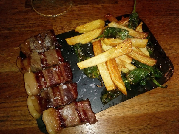Para los carnívoros os recomiendo el bar A Fuego, se trata de un sitio donde realizan carnes a la brasa, las chuletas de cordero estaban deliciosas y la tapa con dos chuletas cuesta 2,20 euros, pero os recomiendo encarecidamente el lagarto, que no os imaginéis que es carne de este animal, sin o de cerdo, pero está deliciosa. También probamos las sardinas, aunque estas nos decepcionaron un poco.